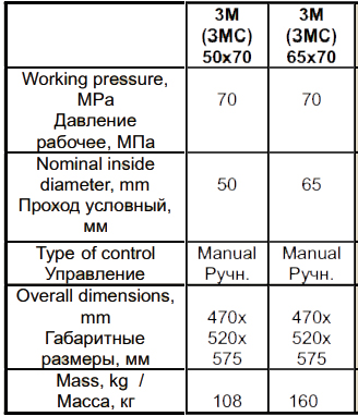 Технические характеристики: Задвижки ЗМС-50-70, ЗМС-65-70 (ЗМ-50-70, ЗМ-65-70)